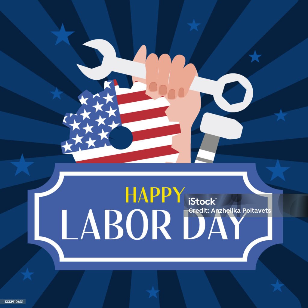 Labor Day Banner Mit Sternen Werkzeugen Und Frauenfaust Mit
